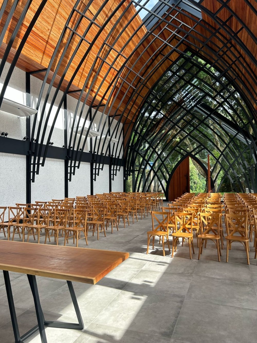 É com imensa alegria que compartilhamos os detalhes do nosso casamento. Nossa cerimônia religiosa será realizada na Capela Don Ângelo dentro do Don Concept Hall, localizado em Blumenau - SC, um lugar especial que escolhemos para celebrar esse momento único.